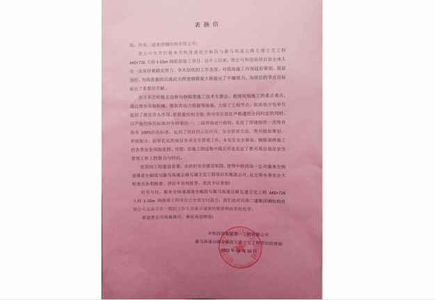 中铁四局集团第一工程有限公司向大发官方版网站登录入口-大发(中国)发来表扬信